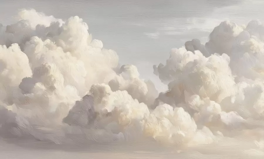 Globos aerostáticos flotando sobre las montañas en tonos pastel neutros y suaves