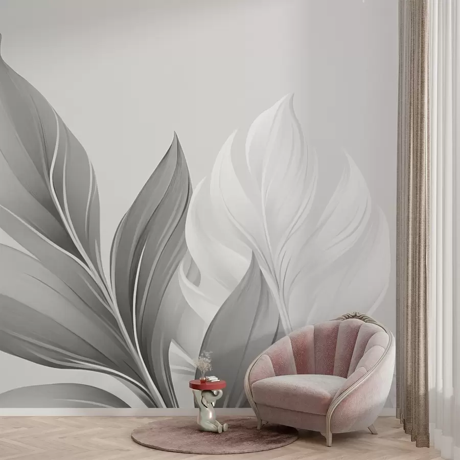 Delicado y moderno estampado floral minimalista en blanco sobre fondo verde pastel claro