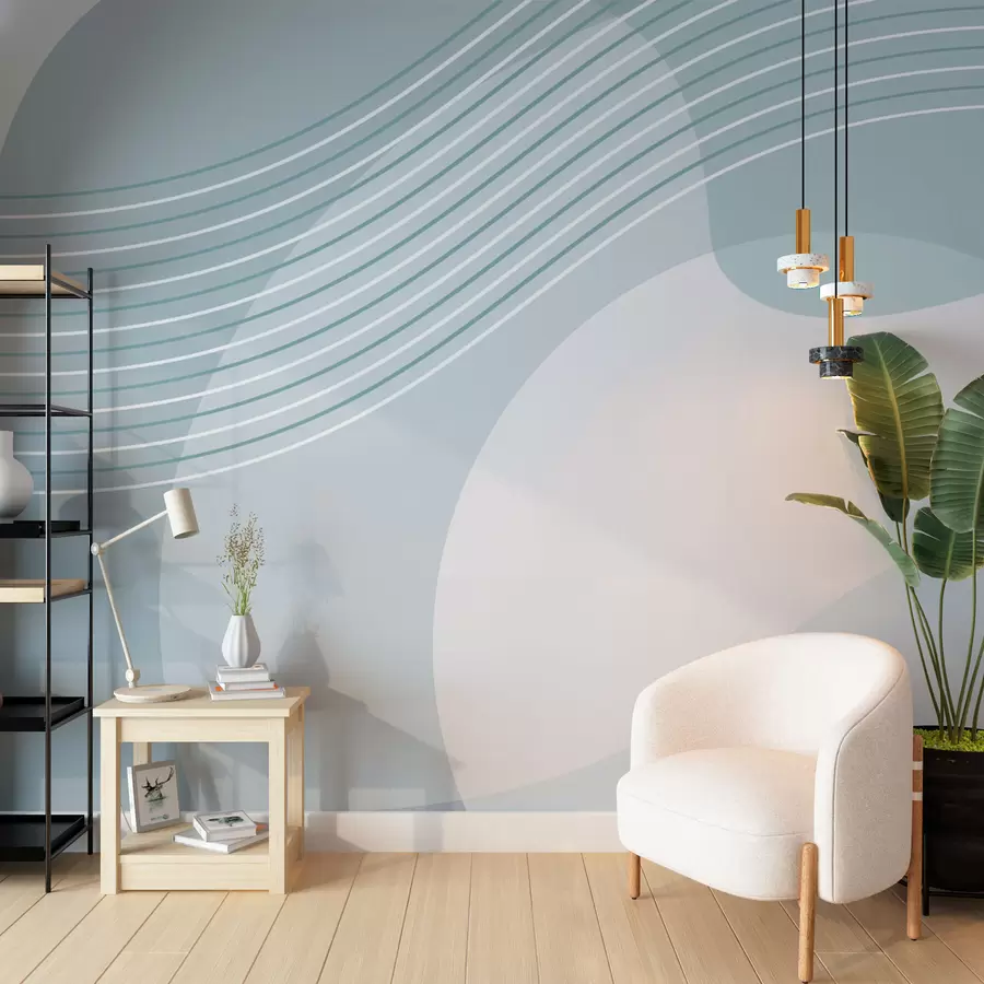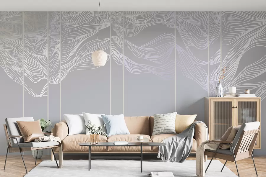 Ondas abstractas de líneas blancas sobre fondo gris claro