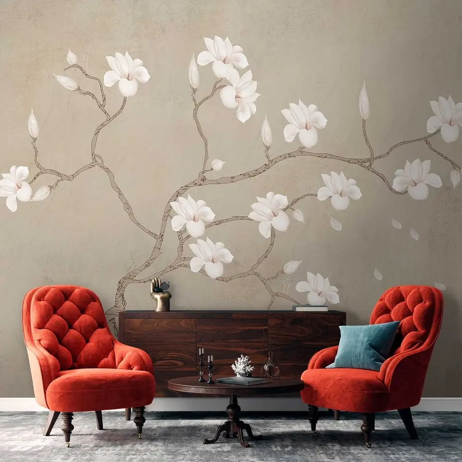 Árboles de magnolia florecientes sobre un fondo de mármol