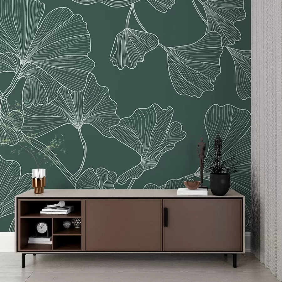 Ilustración detallada de hojas de ginkgo sobre fondo de textura clara