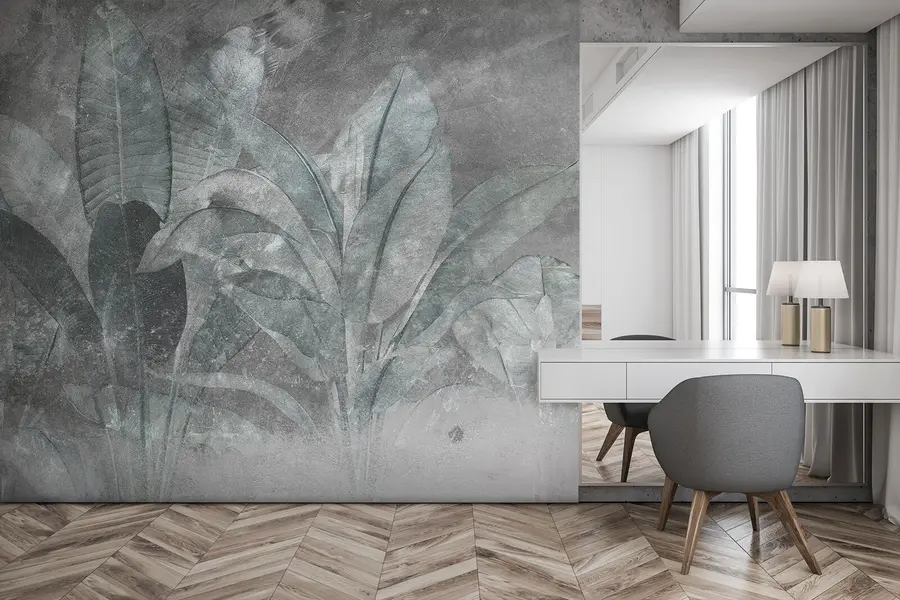 Ficus sobre un fondo de una pared grunge en tonos grises