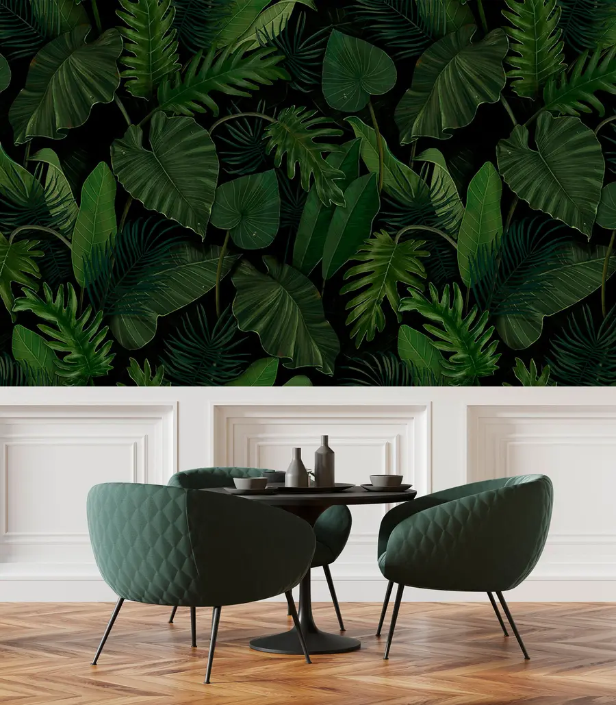 Hojas de palma Monstera en un mínimo de verde pálido.