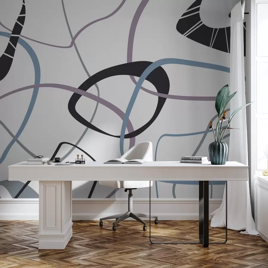 Ondas abstractas de líneas blancas sobre fondo gris claro