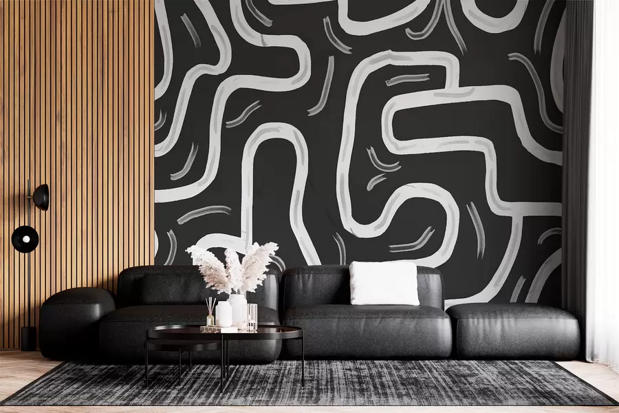 Ondas abstractas de líneas blancas sobre fondo gris claro