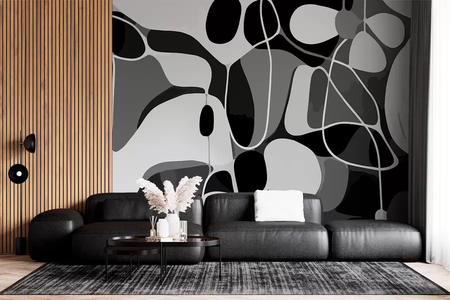 Un boceto en blanco y negro de una impresión gráfica de flores grandes.