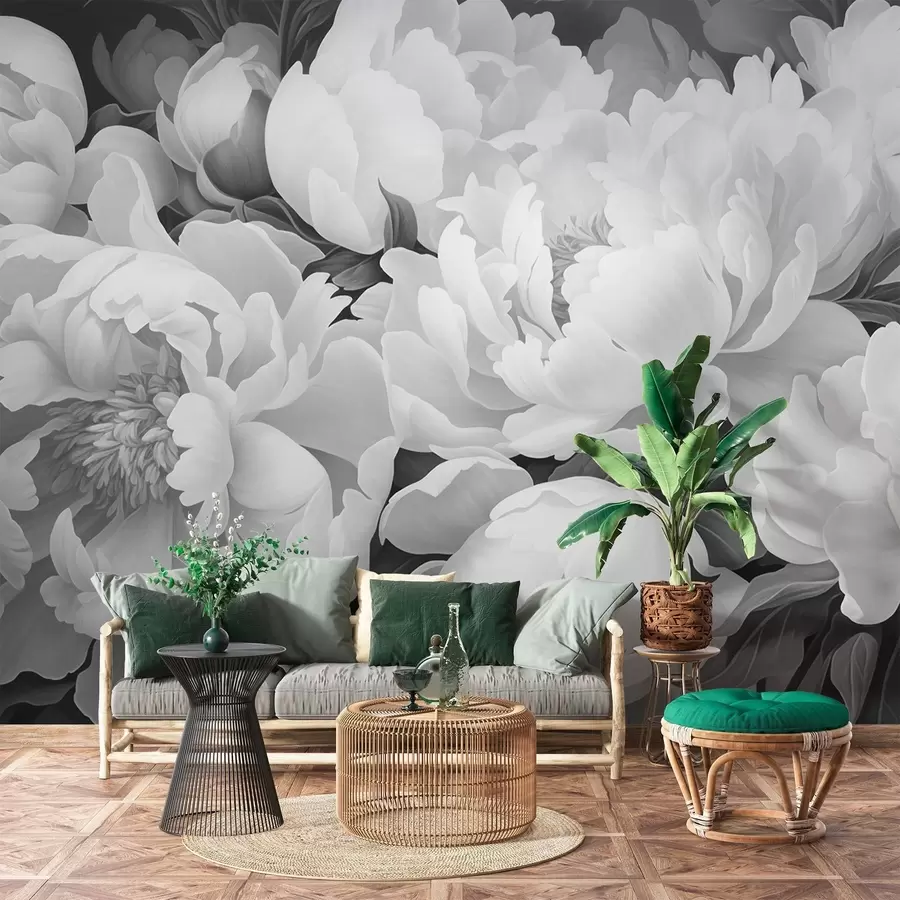 Peonías blancas y negras