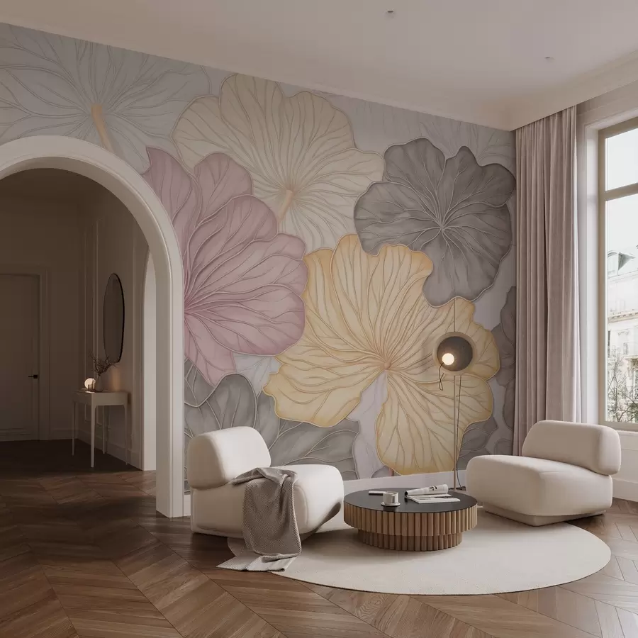 Hojas grandes de color pastel con nervaduras finas