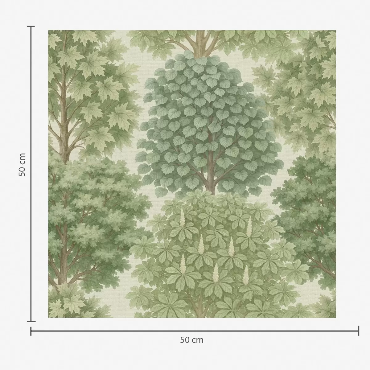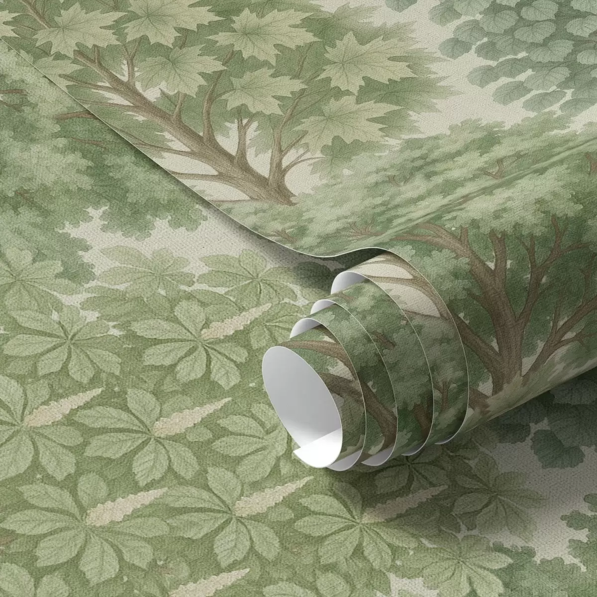 Papel pintado Jardín de árboles en suaves tonos verdes sobre un fondo claro. Nr. a00775