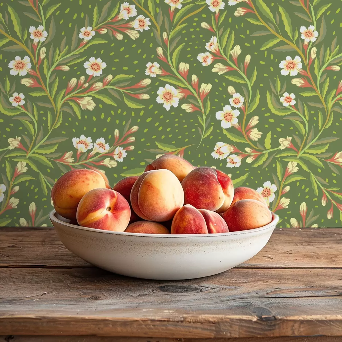 Fotomurales Ramas con flores color crema sobre fondo oliva. Nr. a00850
