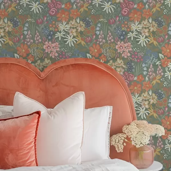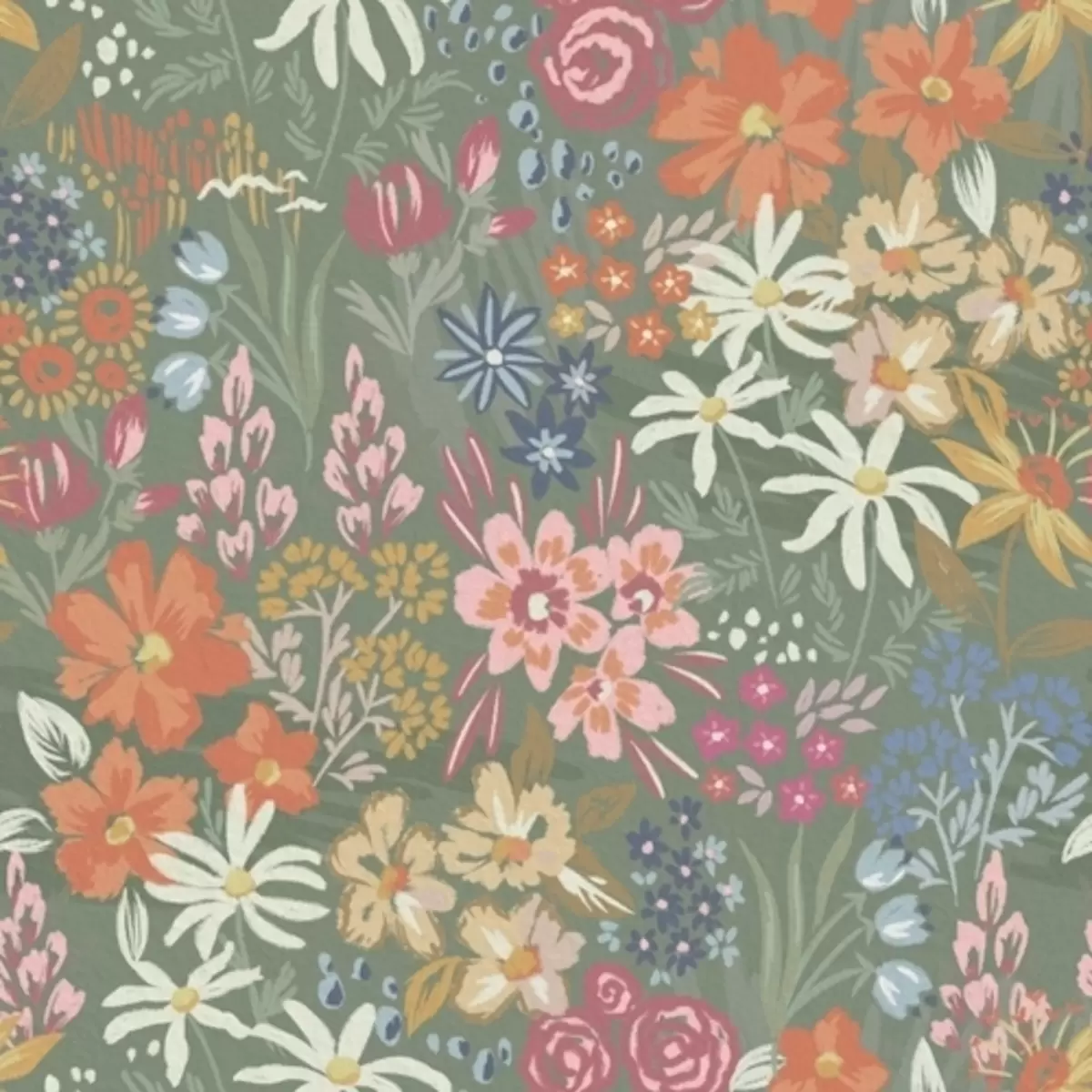 Fotomurales Flores campestres pintadas sobre fondo verde salvia Nr. a00864