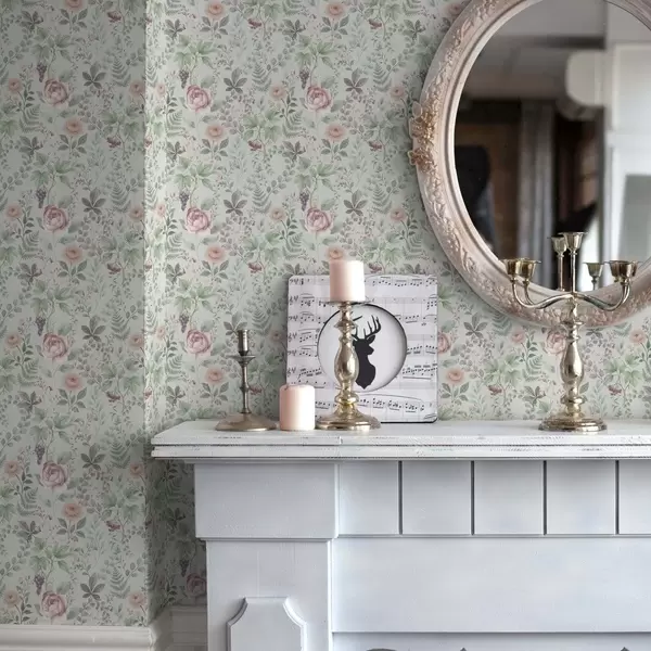 Fotomurales Jardín en tonos pastel con rosas, helechos y uvas. Nr. a00867