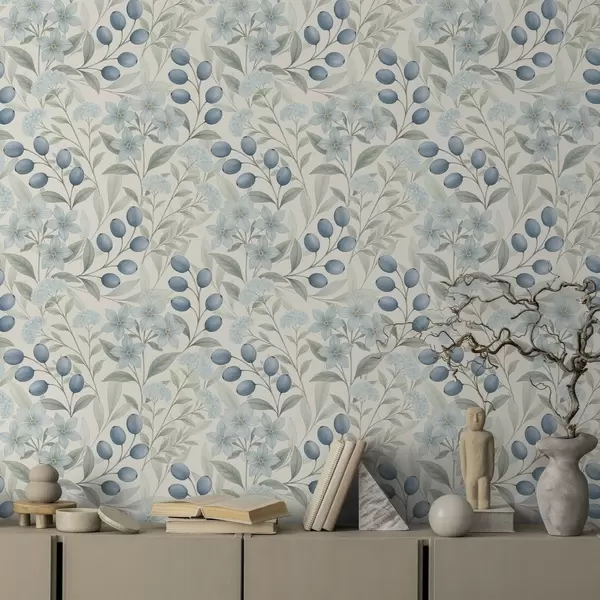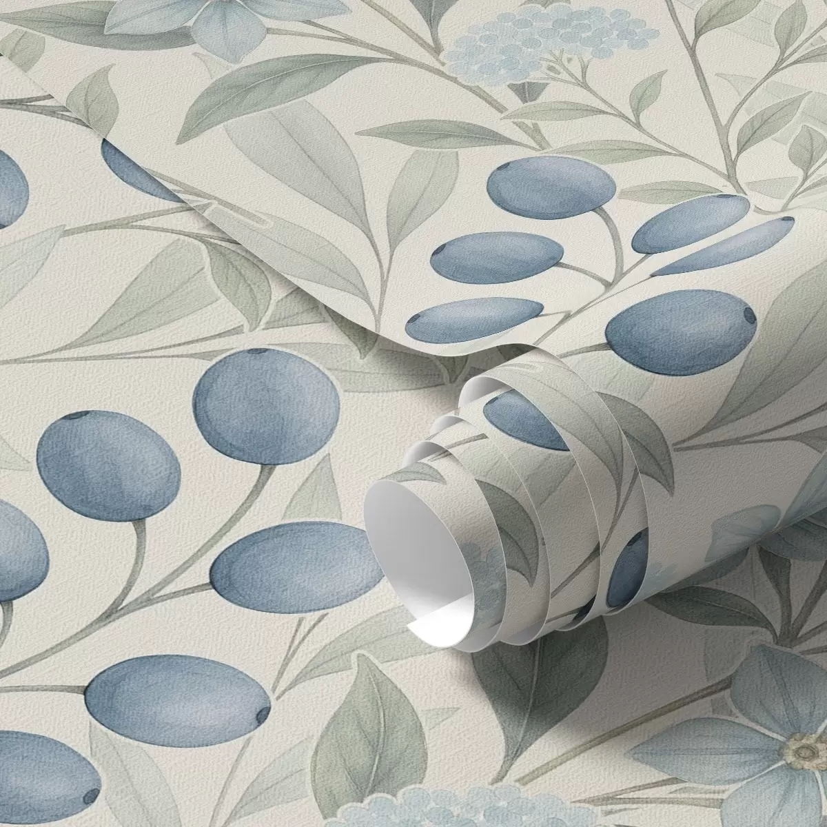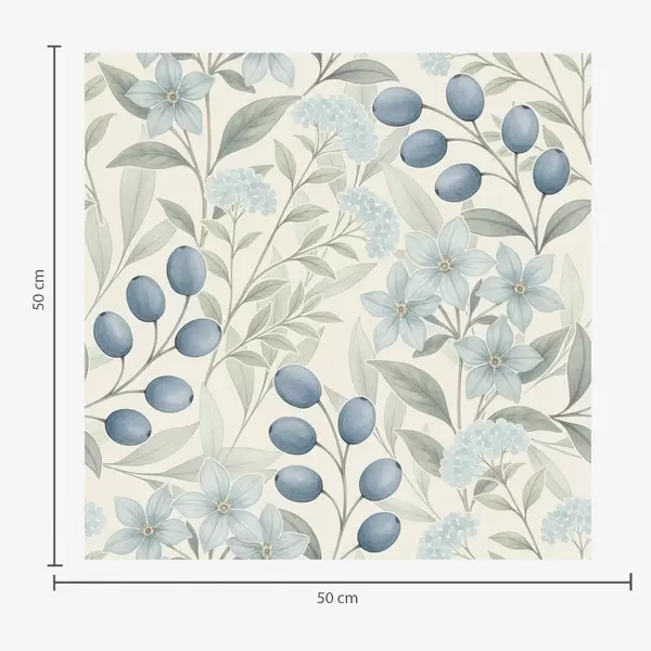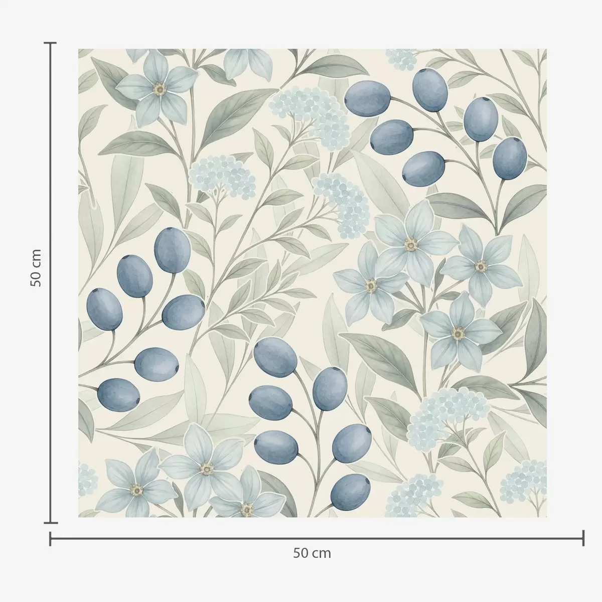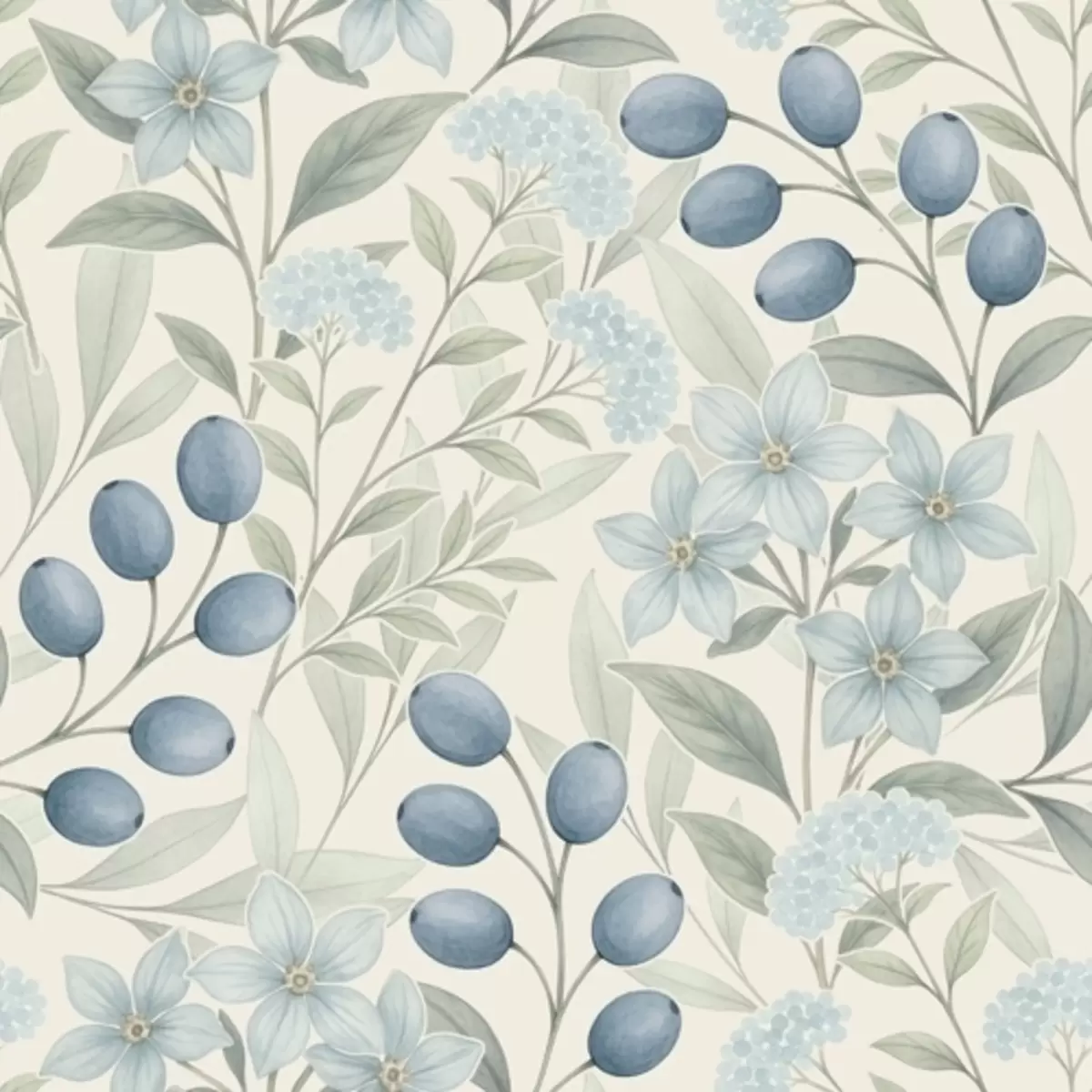 Fotomurales Arándanos azules y flores claras sobre marfil Nr. a00872