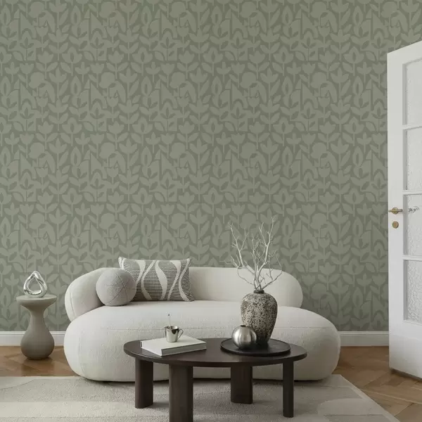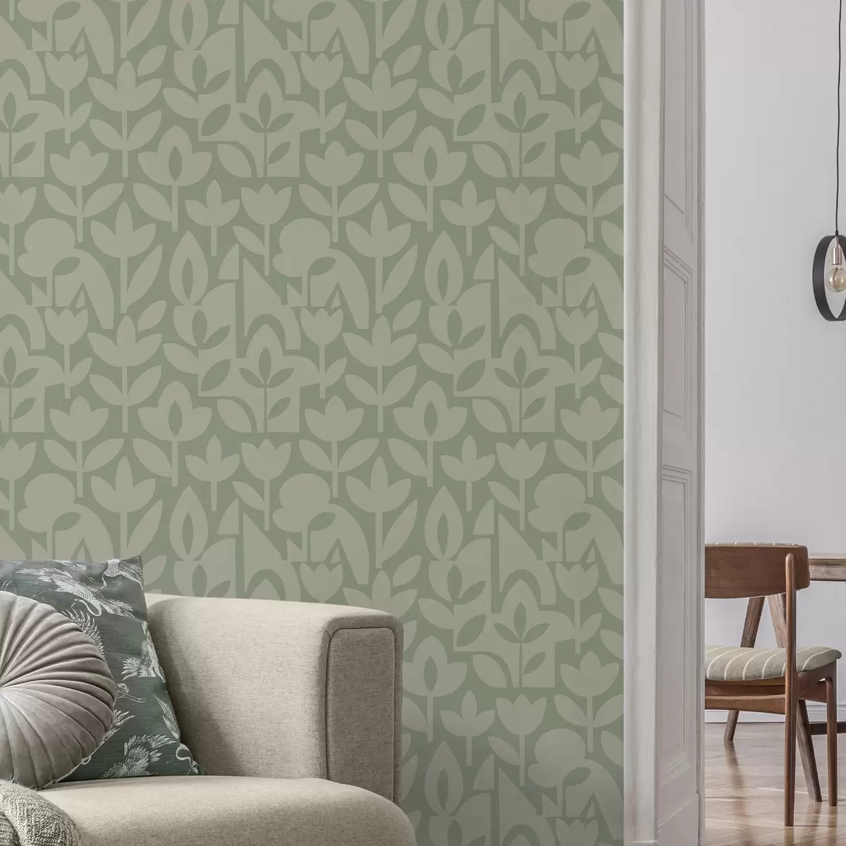 Fotomurales Siluetas florales geométricas en suave color salvia. Nr. a00875v1