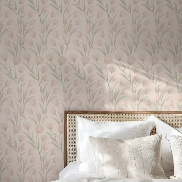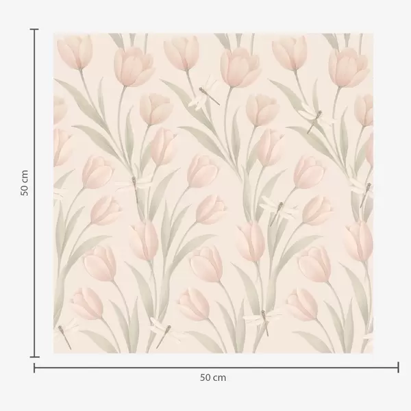 Fotomurales Tulipanes pastel con libélulas sobre fondo rosa pálido Nr. a00876