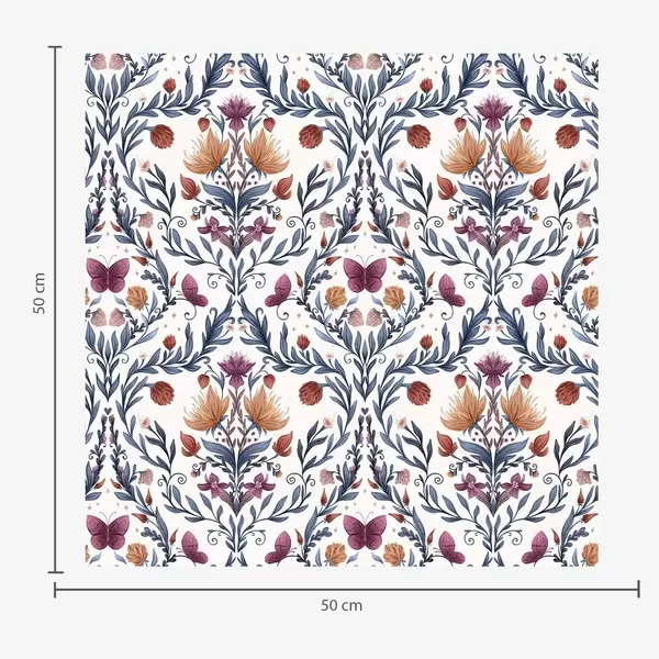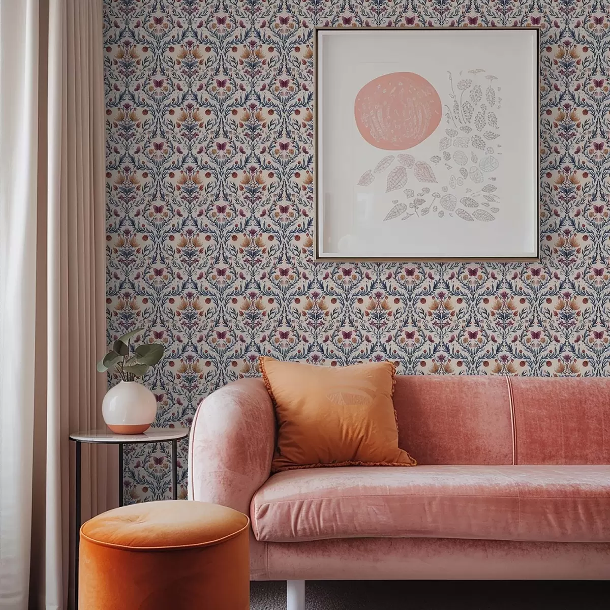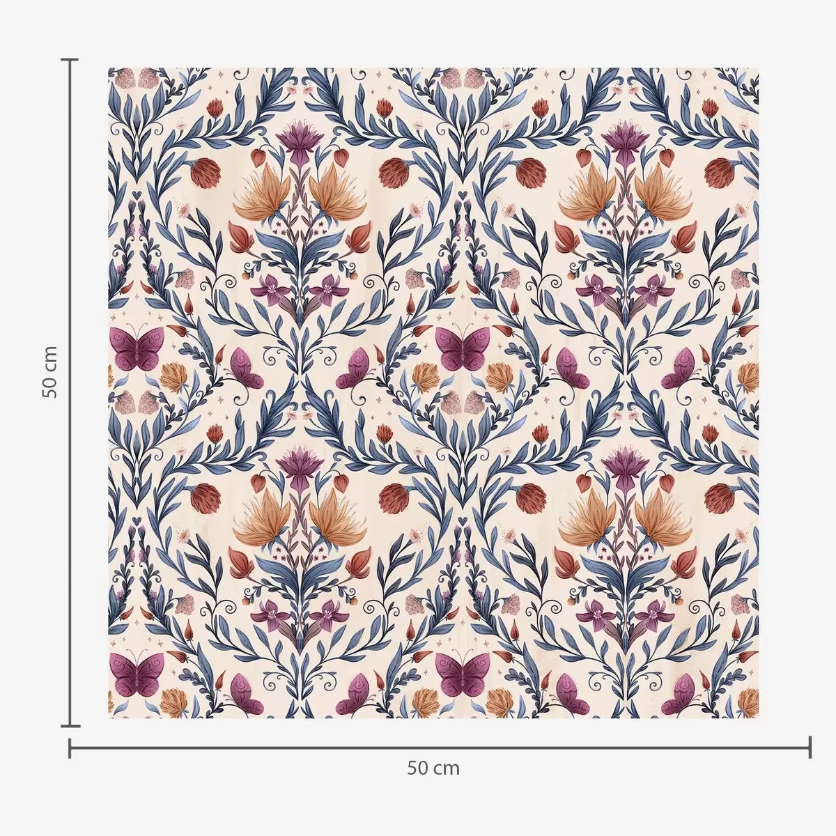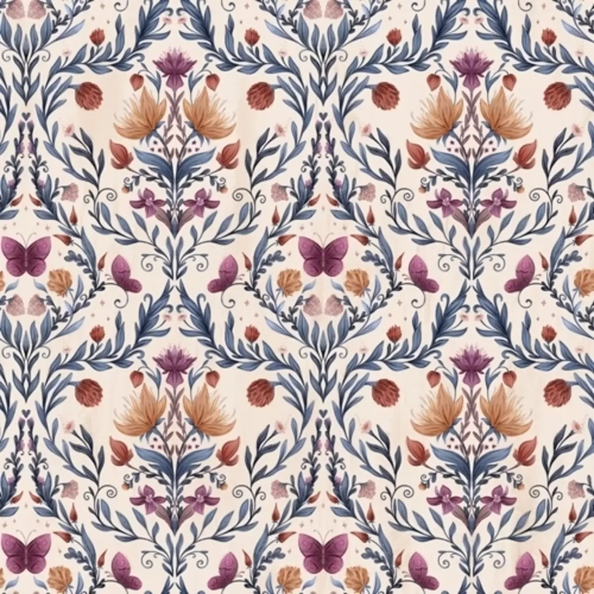 Fotomurales Damasco floral con mariposas sobre fondo melocotón suave. Nr. a00926