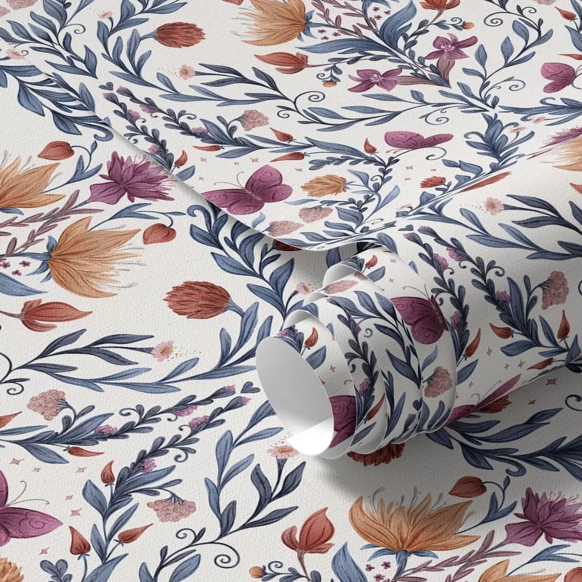 Fotomurales Damasco floral con mariposas sobre fondo crema cálido Nr. a00926v2