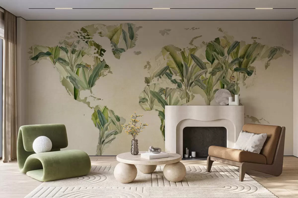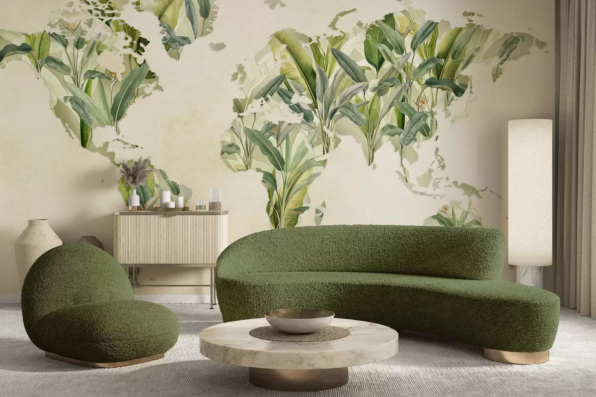 Fotomurales Un mapa verde del mundo hecho con hojas de plátano Nr. c00007