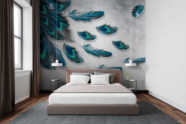 Fotomurales Plumas de pavo real en el fondo de la pared de hormigón Nr. u29836