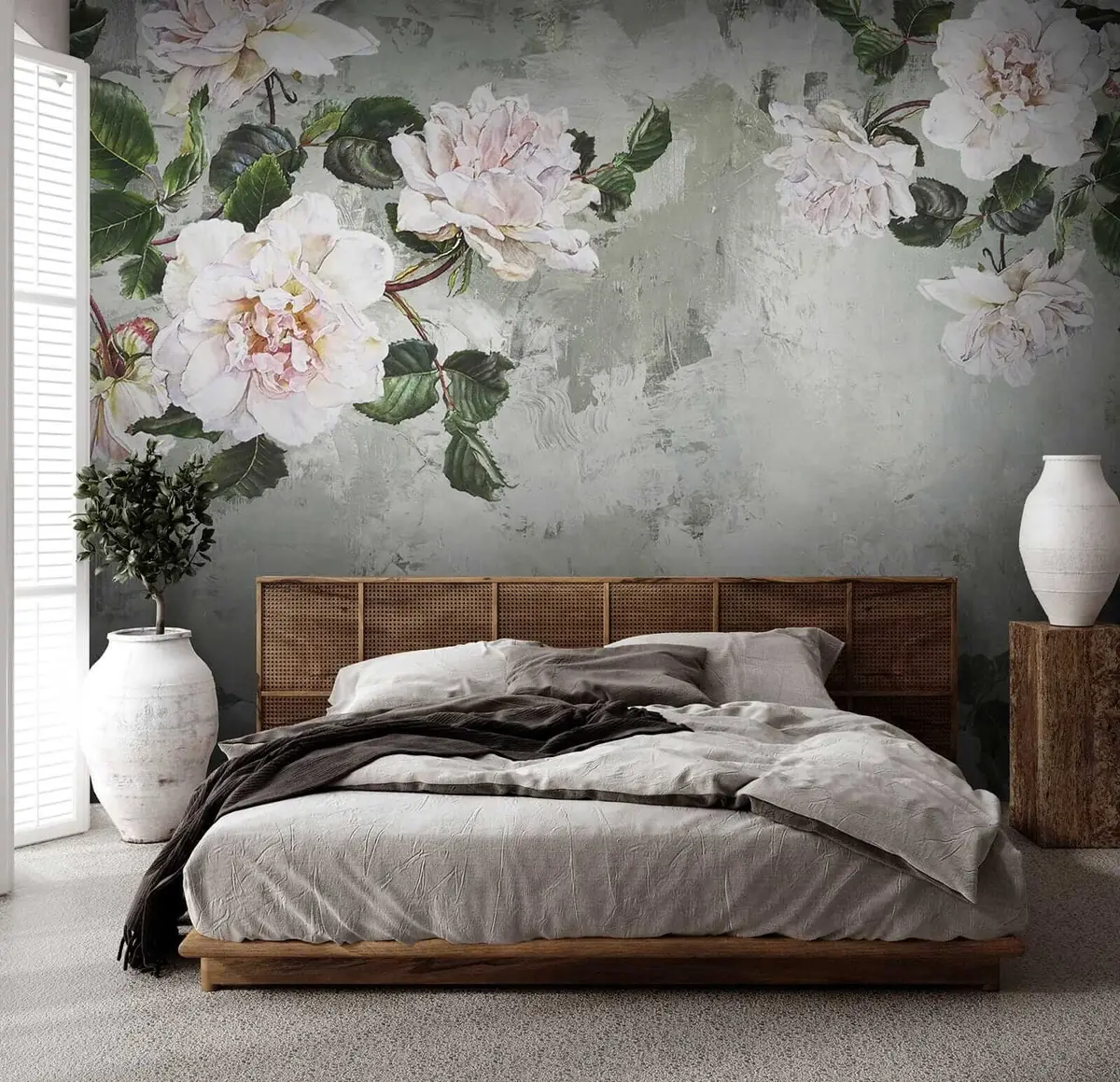 Fotomurales Ramas florecientes en el fondo de una pared en mal estado Nr. u37301