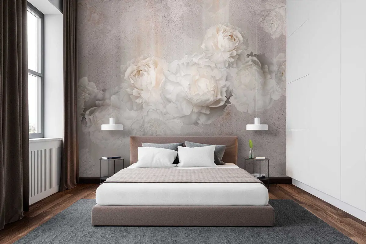 Fotomurales Flores vintage sobre un fondo gris Nr. u61610