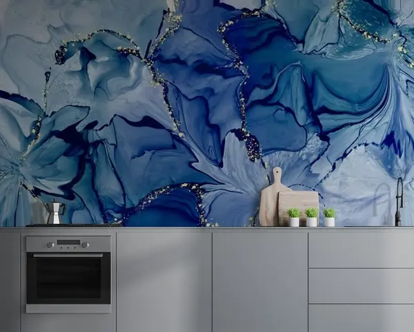 Fotomurales Flores azules con senderos dorados Nr. u71858