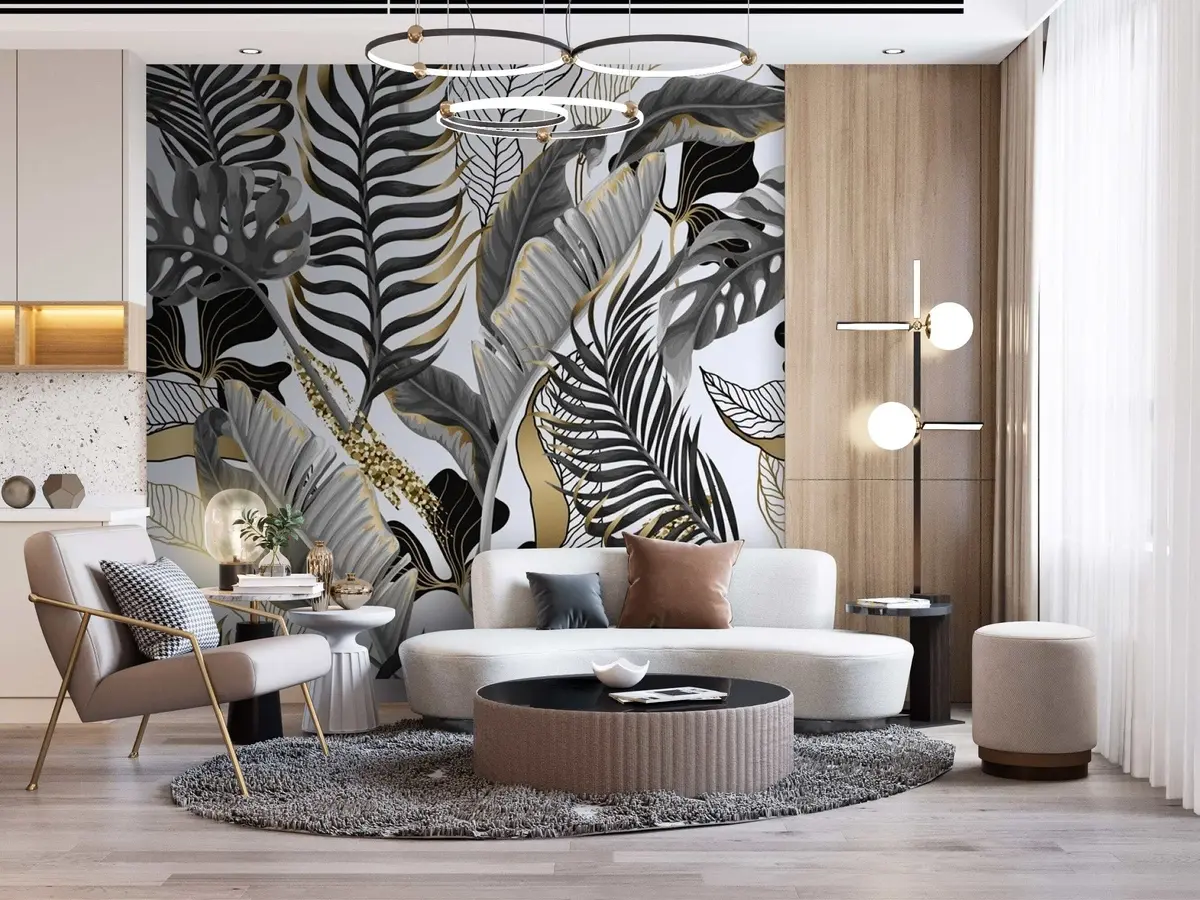 Fotomurales Hojas tropicales grises sobre fondo blanco Nr. u71888