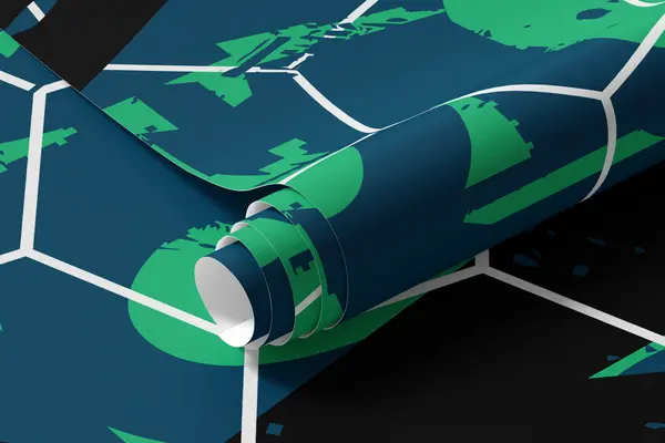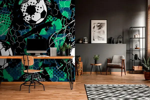 Fotomurales Abstracción negro-verde y pelotas de fútbol. Nr. u73014