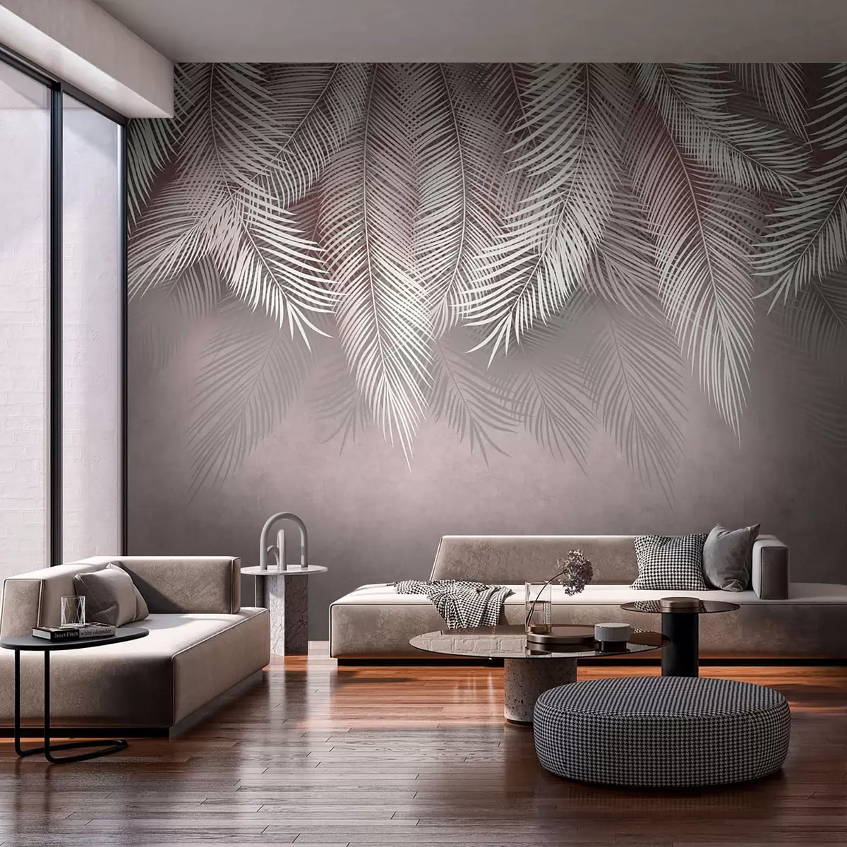 Fotomurales Las nuevas hojas de palma tropical son de color blanco y rosa. Nr. u94358