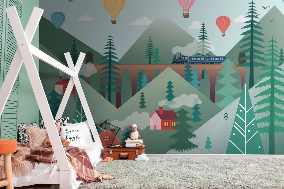 Fotomurales Montañas verdes y un pueblo al estilo escandinavo Nr. u94615
