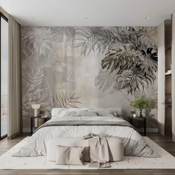 Fotomurales Diseño de hojas tropicales con textura grunge Nr. u94647