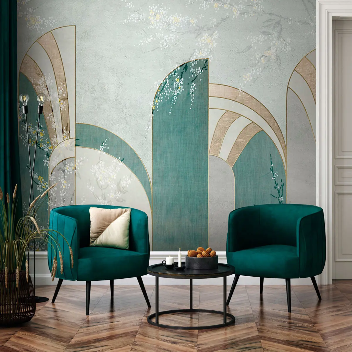 Fotomurales Ramas florales que aparecen entre los paneles. Nr. u96316