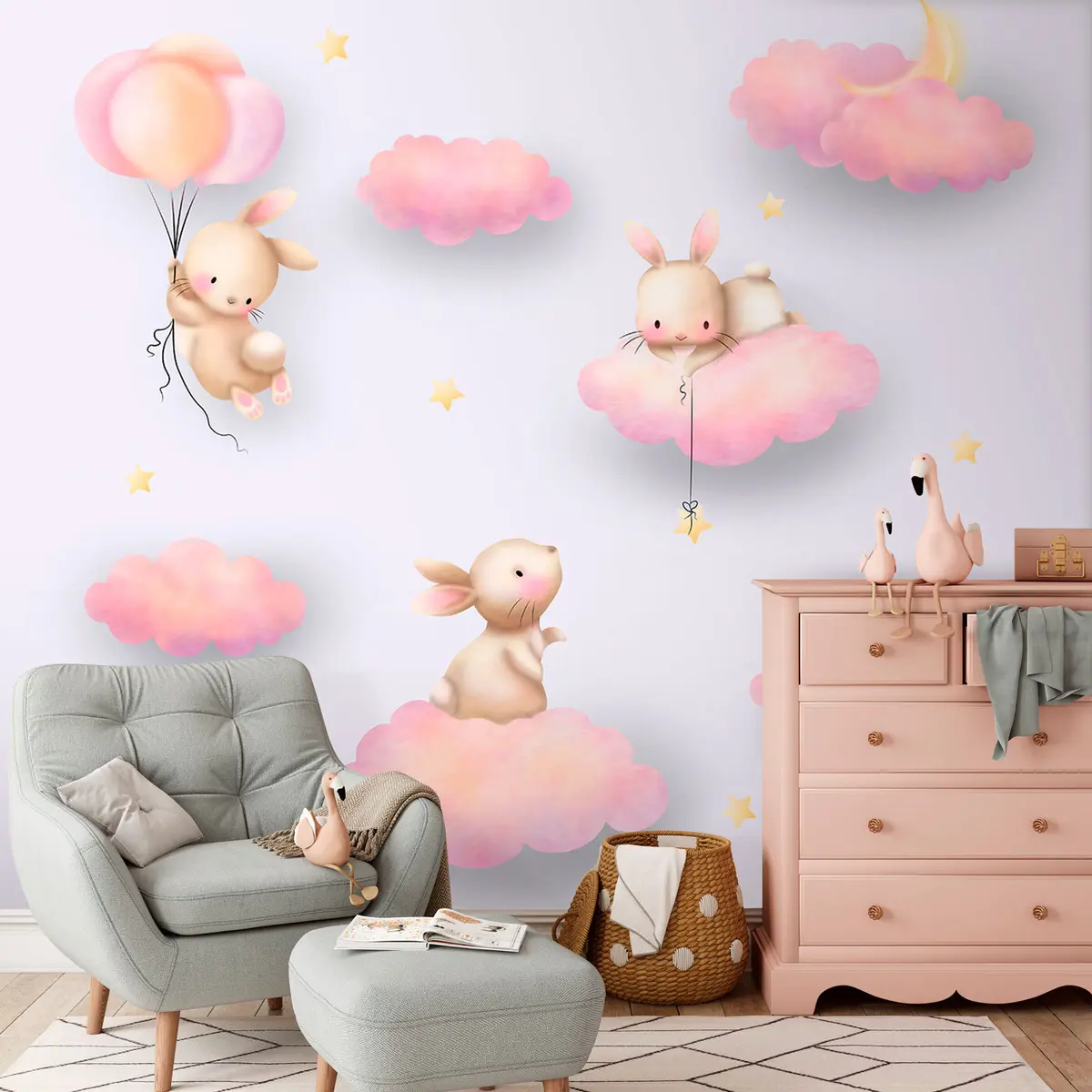 Fotomurales Conejitos en las nubes al estilo infantil. Nr. u96613