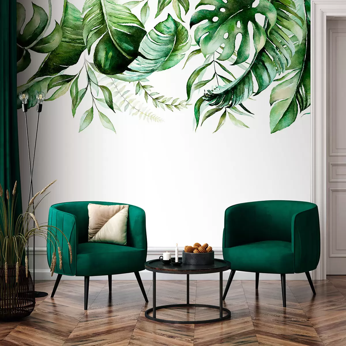 Fotomurales Hojas tropicales de acuarela verde aisladas sobre fondo blanco Nr. u96917