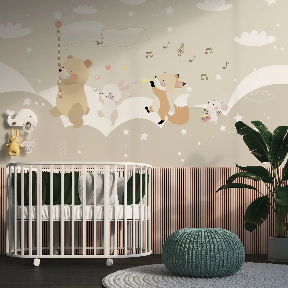 Fotomurales Diseño de papel pintado para habitación infantil con simpáticos animales en tonos rosas Nr. u98969