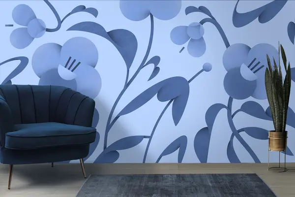 murales de pared Estampado botánico con flores decorativas en azul u99196v8