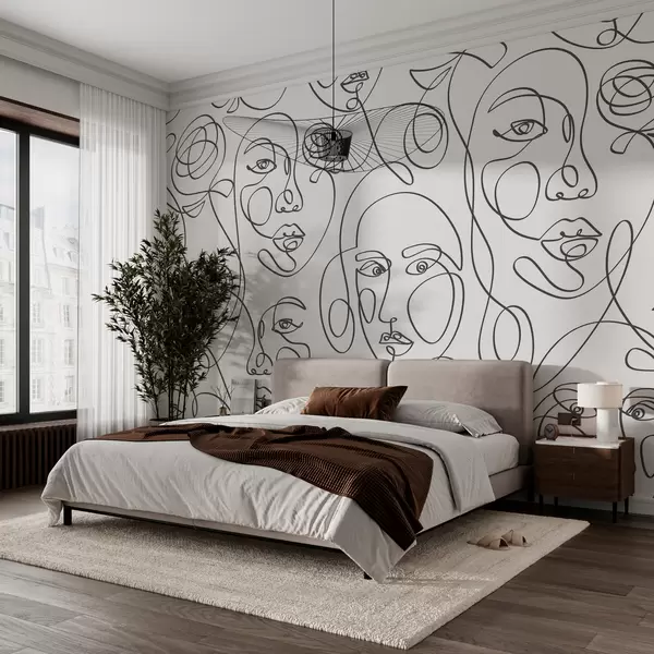 Fotomurales Las siluetas de rostros con líneas gráficas de estilo boho son una nueva tendencia Nr. w00130