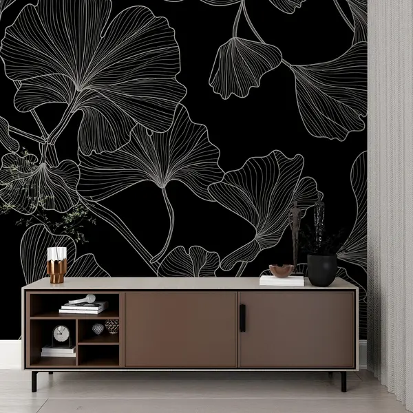 Fotomurales Fondo negro de vid de Ginkgo Nr. w00328v1