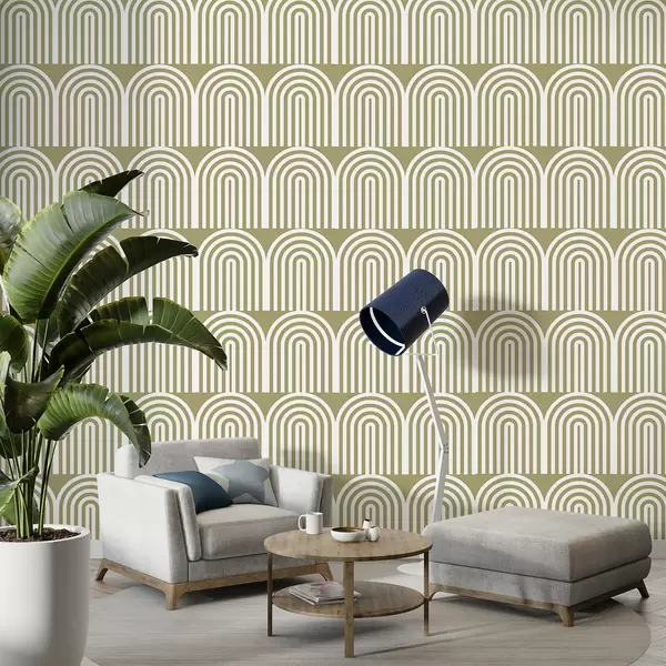 Fotomurales Líneas ovaladas blancas sobre fondo verde claro. Nr. w00484v2