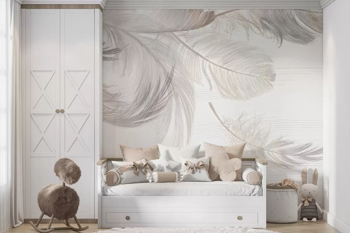 Fotomurales Plumas blancas suaves y delicadas flotando sobre un fondo claro Nr. w00739