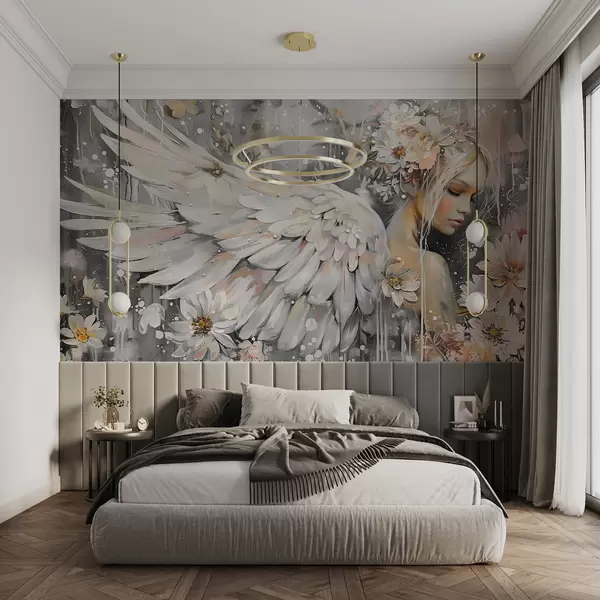 Fotomurales Niña ángel sobre un fondo gris pintado al óleo Nr. w00761