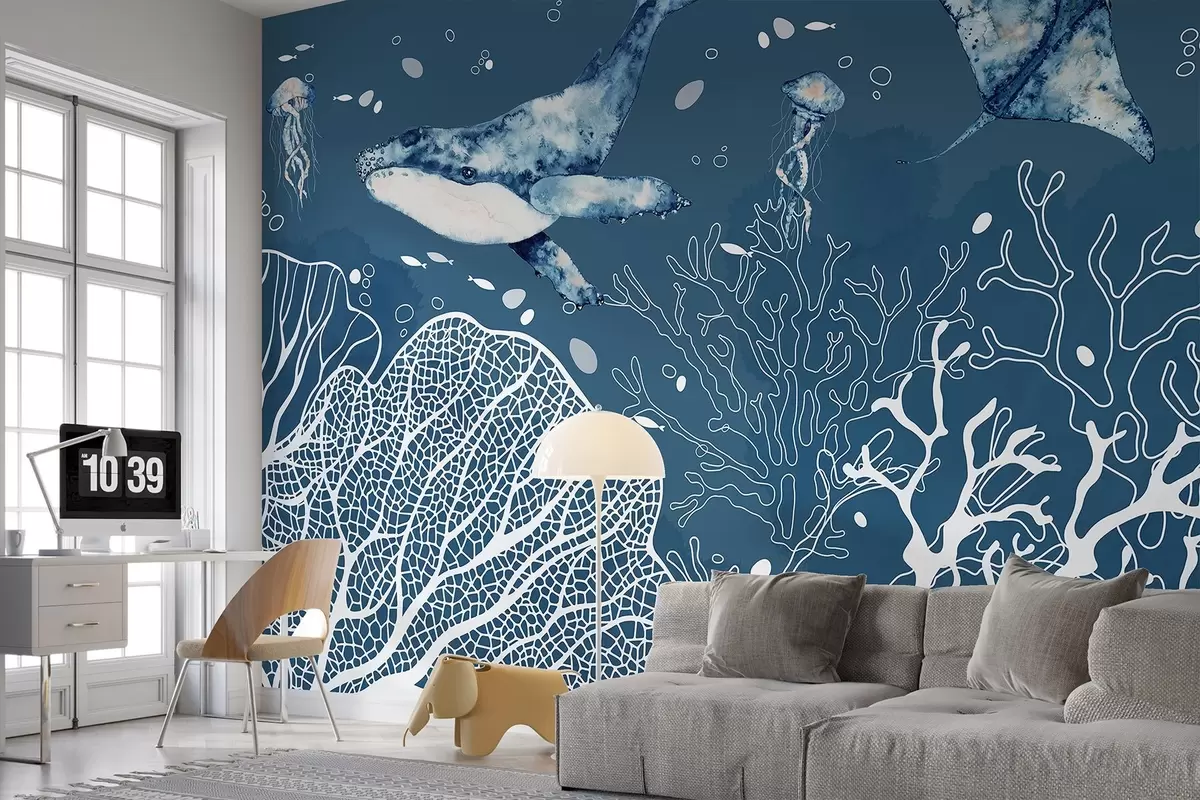 Fotomurales Maravillas submarinas en azules serenos Nr. w00848v1