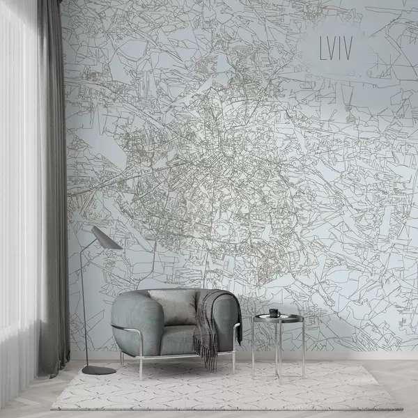 Fotomurales Mural de pared con retrato de la ciudad de Lviv sobre fondo azul claro Nr. w01023
