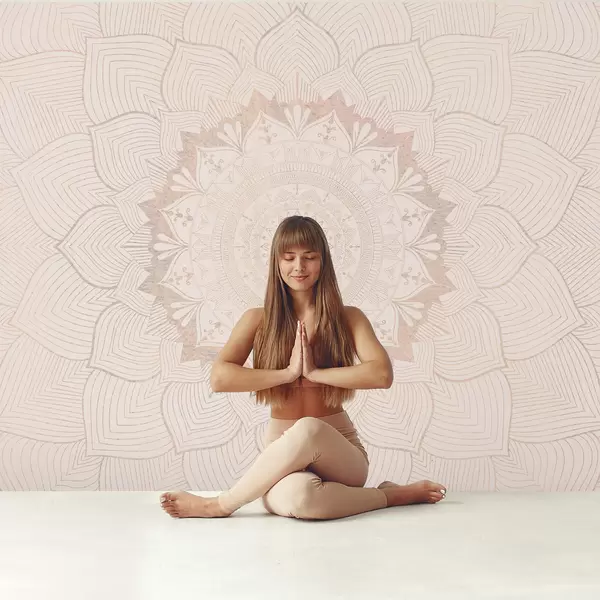 Fotomurales Mandala redondo, papel pintado para espacio de yoga o para armonizar el espacio personal. Mandala mural en cálidos colores pastel sobre fondo irregular texturizado Nr. w01088