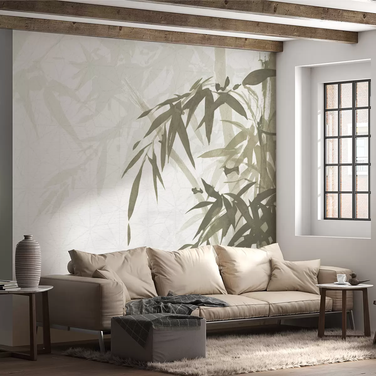 Fotomurales sombras de hojas, ramas verdes con hojas sobre un fondo claro Nr. w01328v1