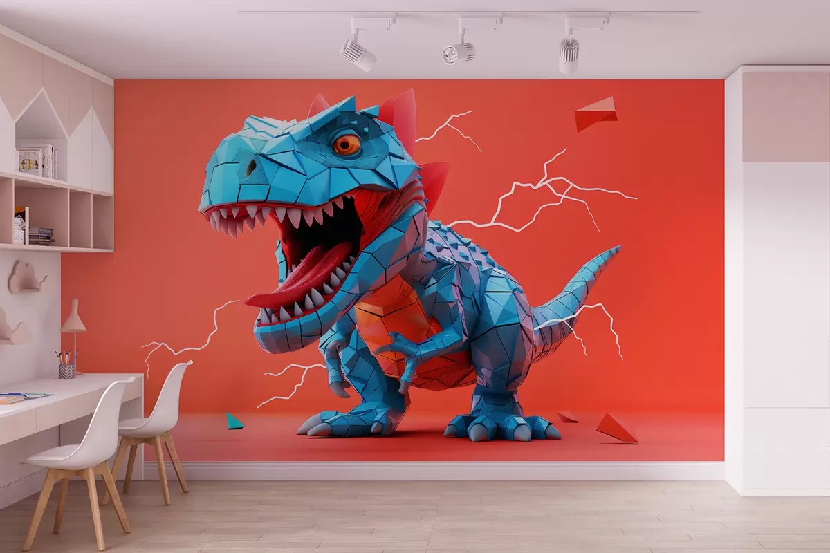Fotomurales Dinosaurio feroz con un rayo en colores rojo y azul. Nr. w01333