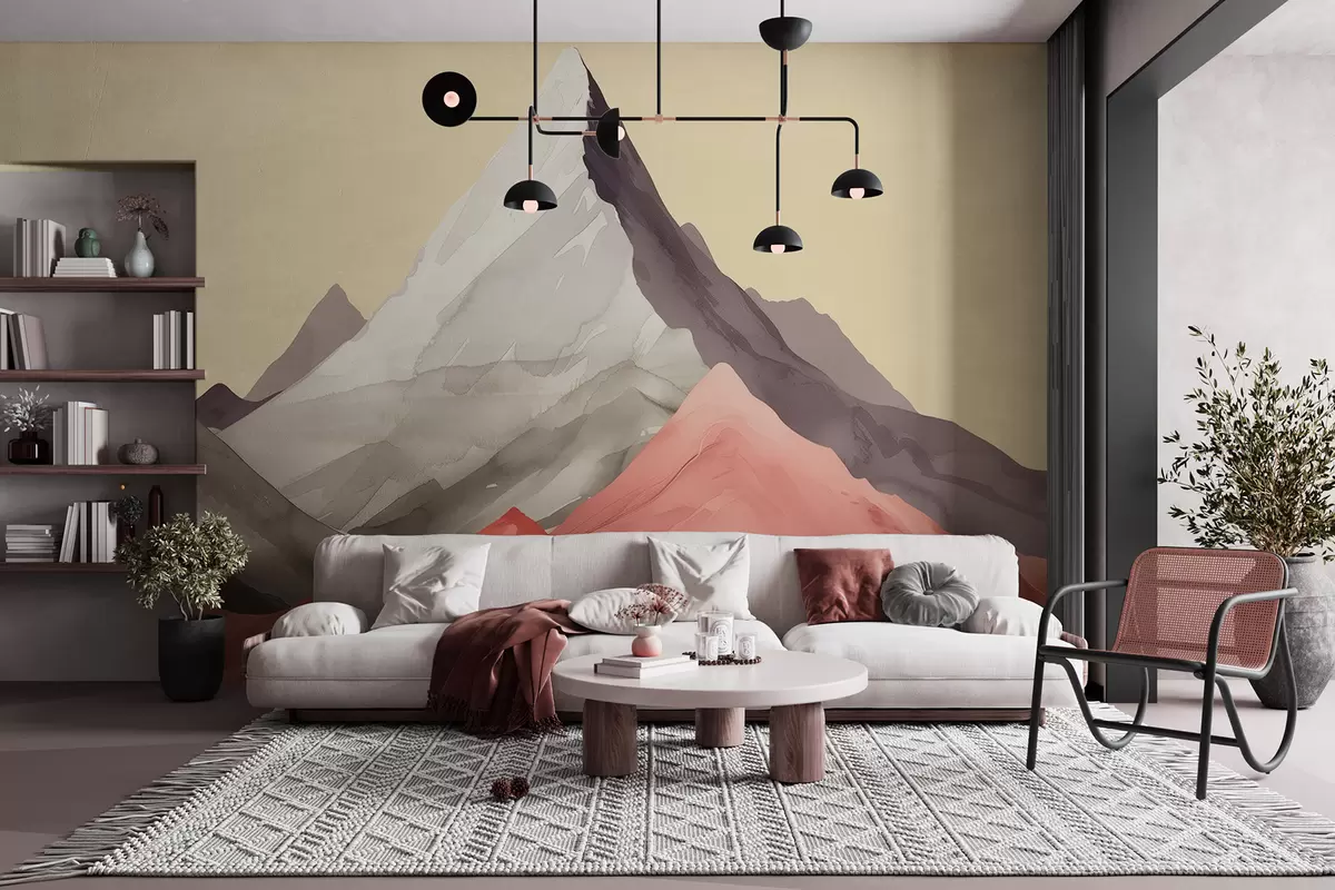 Fotomurales Montañas pastel con acento rojo Nr. w01393