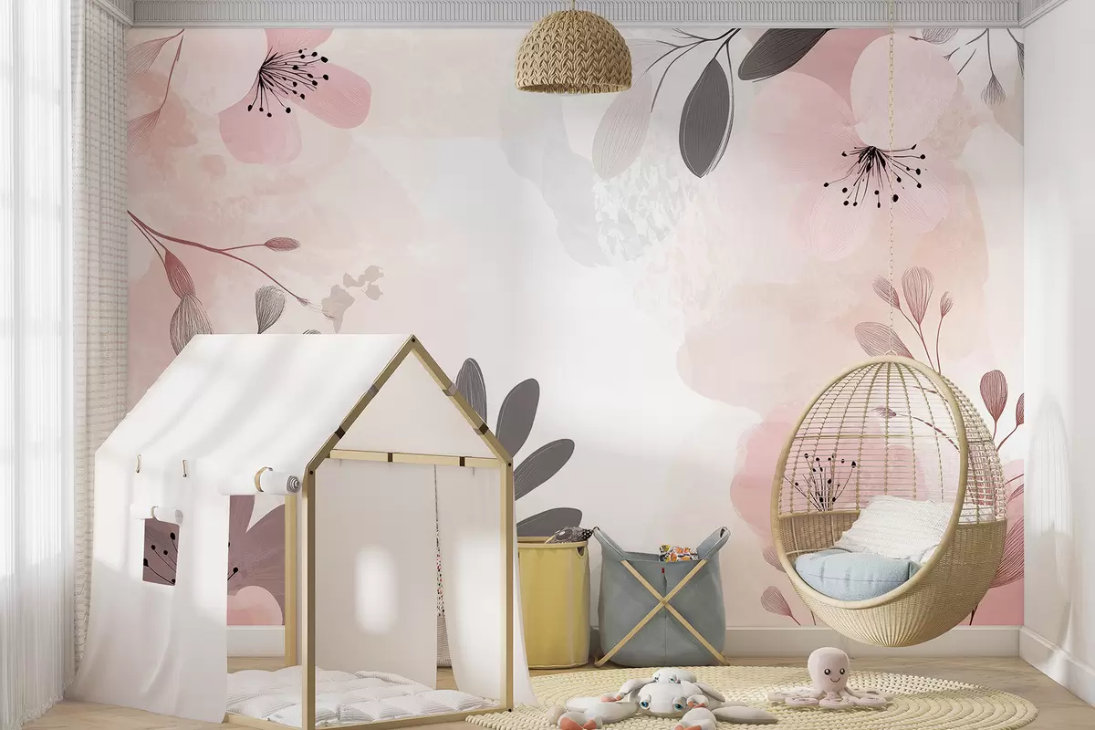 Fotomurales Dibujo floral abstracto, naturaleza, flores grandes, pastel suave, paleta de colores rosa Nr. w01451v1