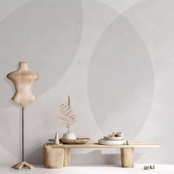 Fotomurales Geometría de color gris de círculos y hojas de ginkgo Nr. w01466v1