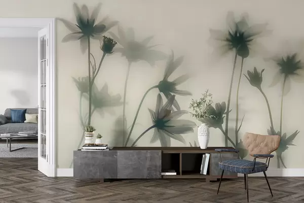 Fotomurales Delicadas flores en la niebla en colores azules. Nr. w01468v1